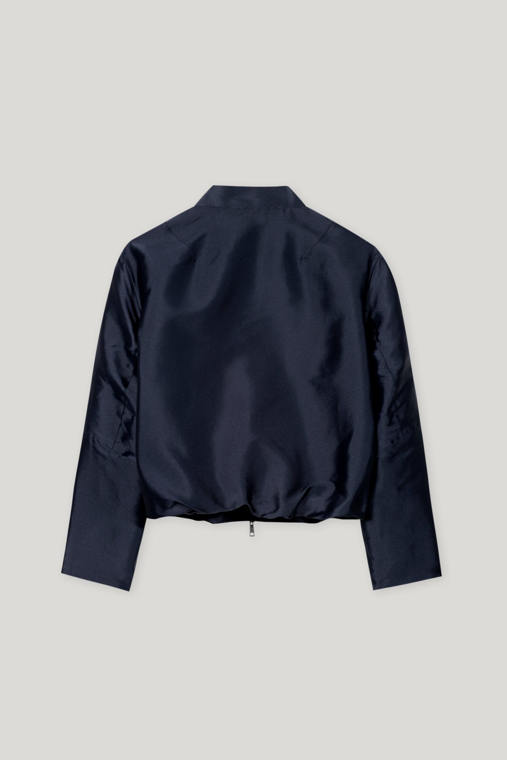 Sportiv-eleganter Blouson aus edler Seidenmischung in feiner Taftbindung mit Zwei-Wege-Frontreißverschluss und zwei Taschen. Die kurze, kastig geschnittene Jacke ist gefüttert und farblich dezent changierend.